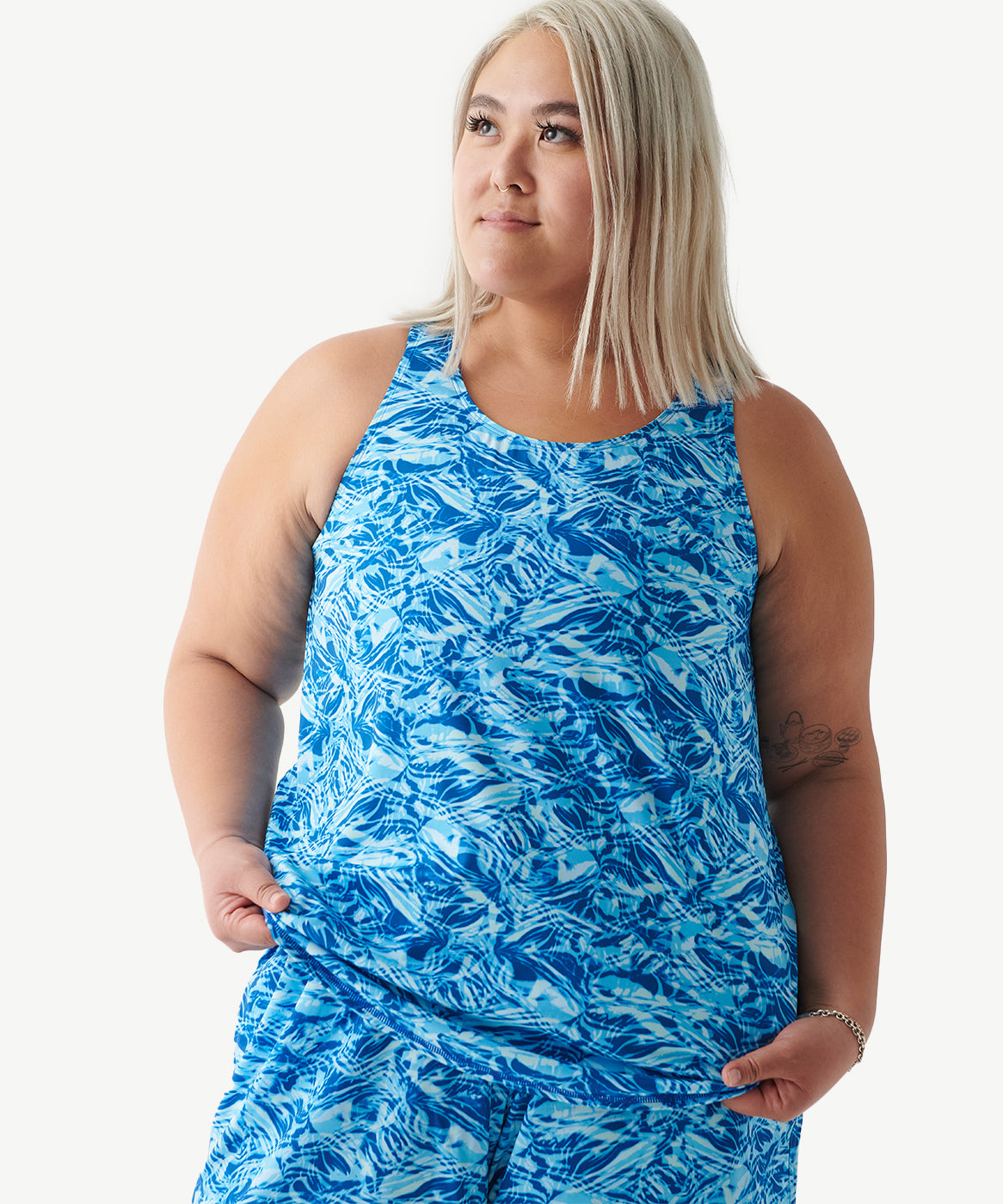 A full-coverage tank that you can feel like yourself in. Not too loose, not too tight—it’s just right for the water and wherever else.